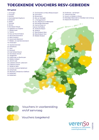 ZonMw heeft al in 15 RESV-gebieden een voucher toegekend aan specialisten ouderengeneeskunde voor versterking van de regionale monodisciplinaire organisatiegraad eerstelijnszorg. Bekijk hier waar een voucher is toegekend.In 54 RESV-gebieden worden momenteel regionale eerstelijns samenwerkingverbanden (RESV) opgezet. Onze beroepsgroep kan vouchers a...