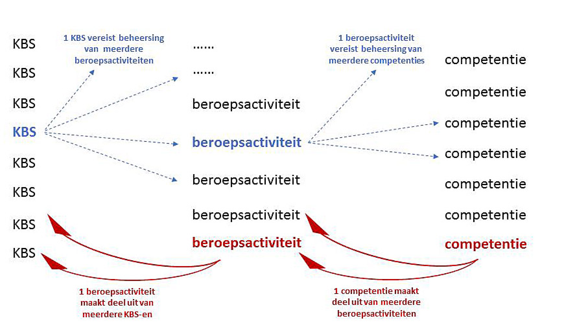 Hoe KBS, beroepsactiviteiten en competenties samenhangen is te zien in onderstaand schema.
