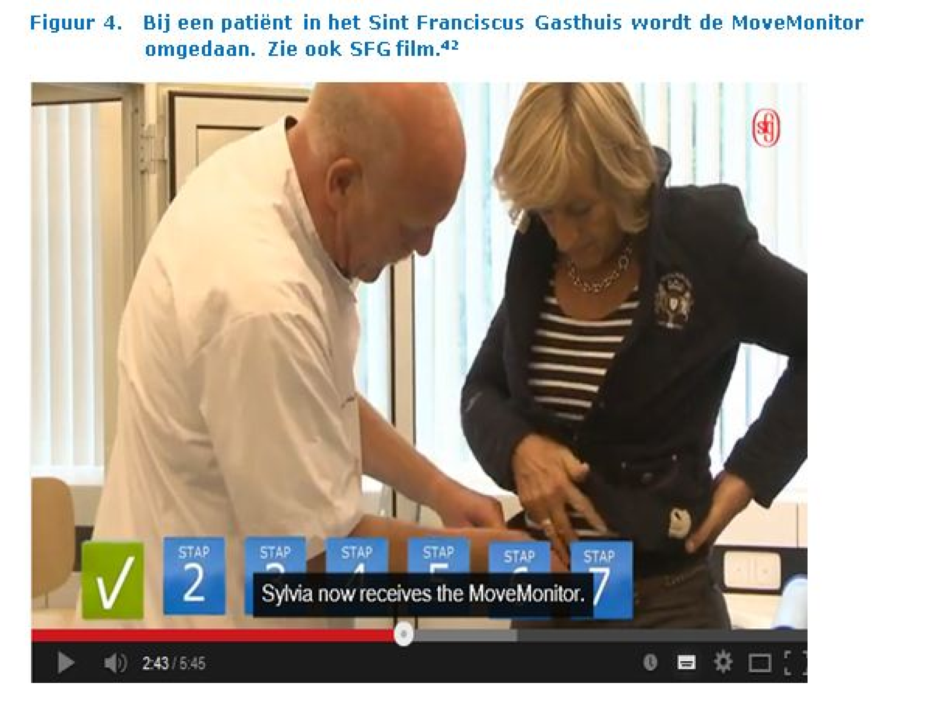Er wordt een nieuwe zorgstandaard ontwikkeld voor COPD en astma patiënten.41 In een aantal ziekenhuizen en revalidatiecentra worden sinds kort activiteitenmonitoren gebruikt in het zorgpad. De eerste kliniek waar de MoveMonitor in de polikliniek wordt gebruikt is het Sint Franciscus Gasthuis in Rotterdam (zie figuur 4)42, gevolgd door het Amphia ziekenhuis in Breda.